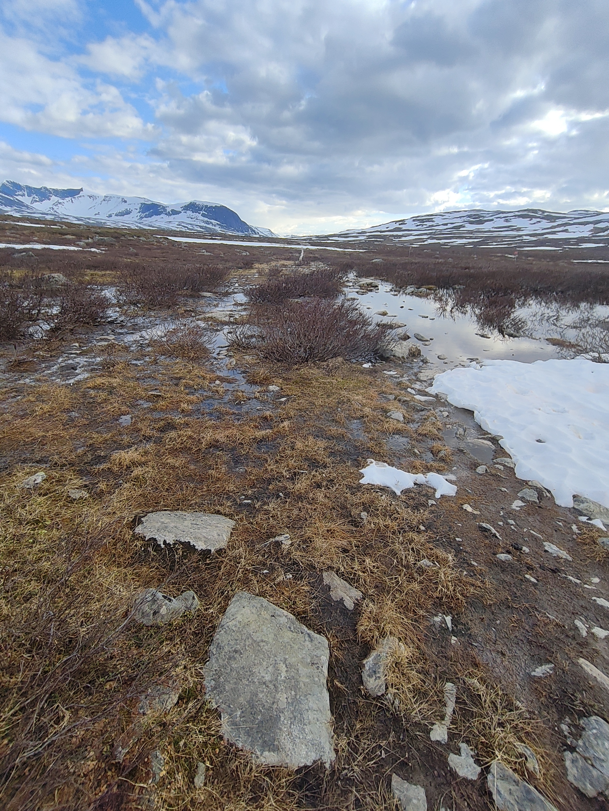 After experiencing the misfortune that is old snow fields a few times I started looking for a camp to set up for the night. Unfortunately that was still quite a ways away as all the water from the melting snow fields turned any promising areas into mud.